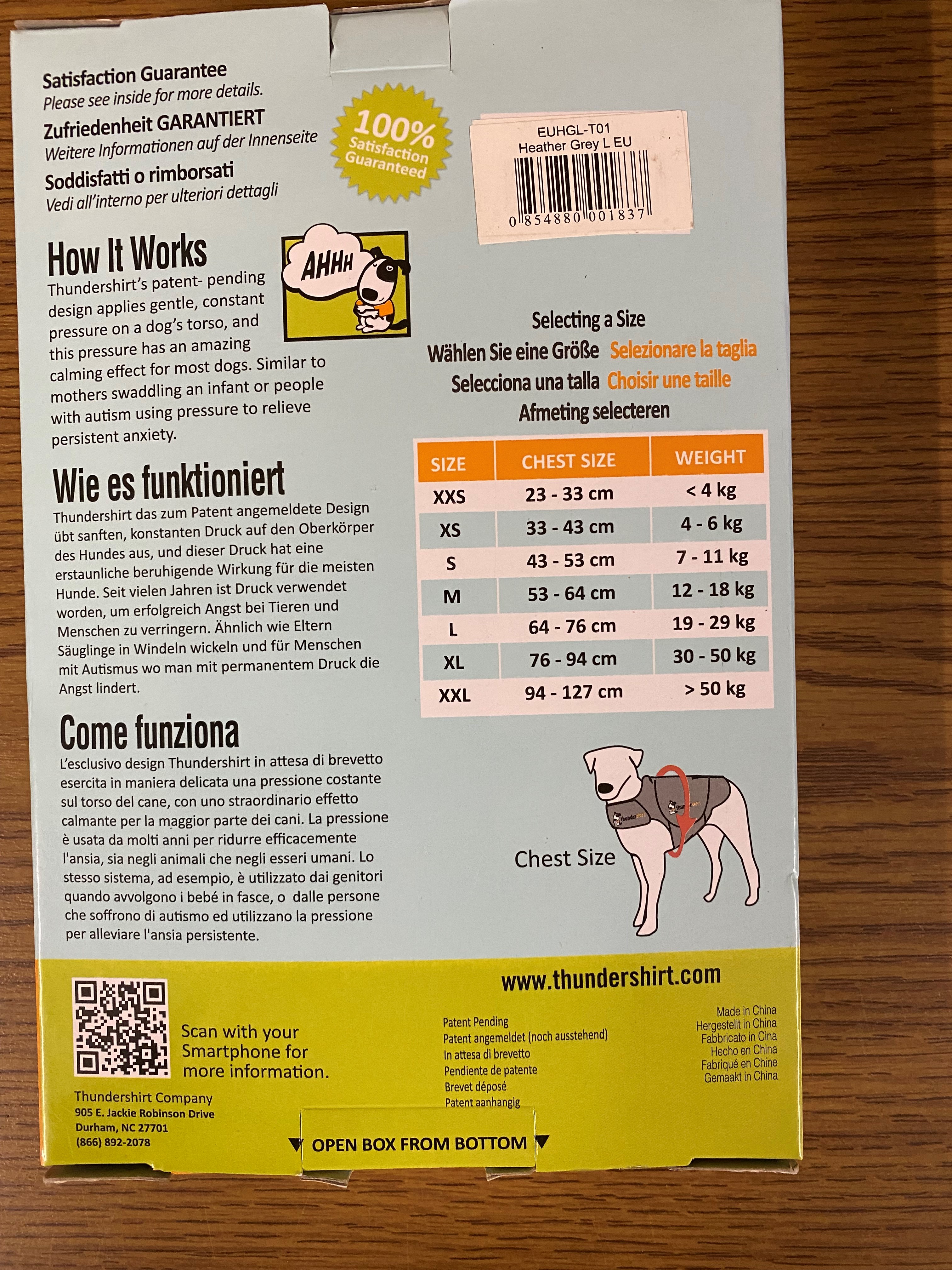 Thundershirt Angst bei Hunden Grösse L